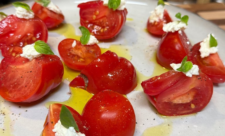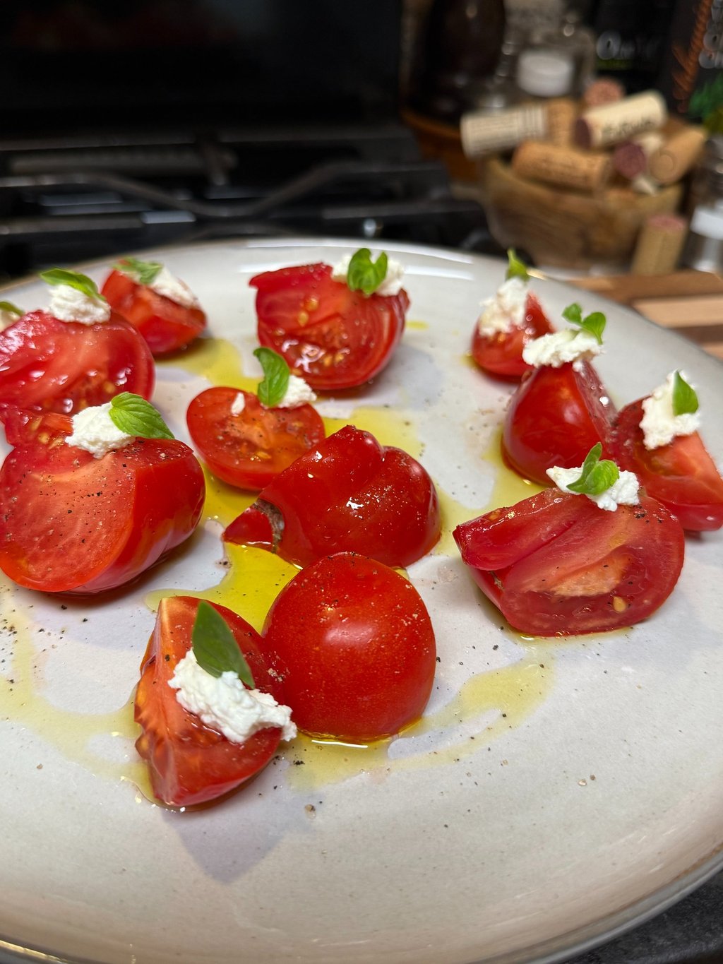 Shopping the farmers Markets! Yes, many have had those sweet and juicy Jersey tomatoes while living on the East Coast, but these early girl tomatoes are perfectly ripe, sweet and juicy too! Ricotta, a good olive oil, micro basil and freshly ground pepper and some flake salt. Simple and DELISH! My Asian twist if I am on a wimp, add fermented soy instead of the ricotta. Voila, it is turned into a vegan summer salad accompanied by abundance of umami notes!