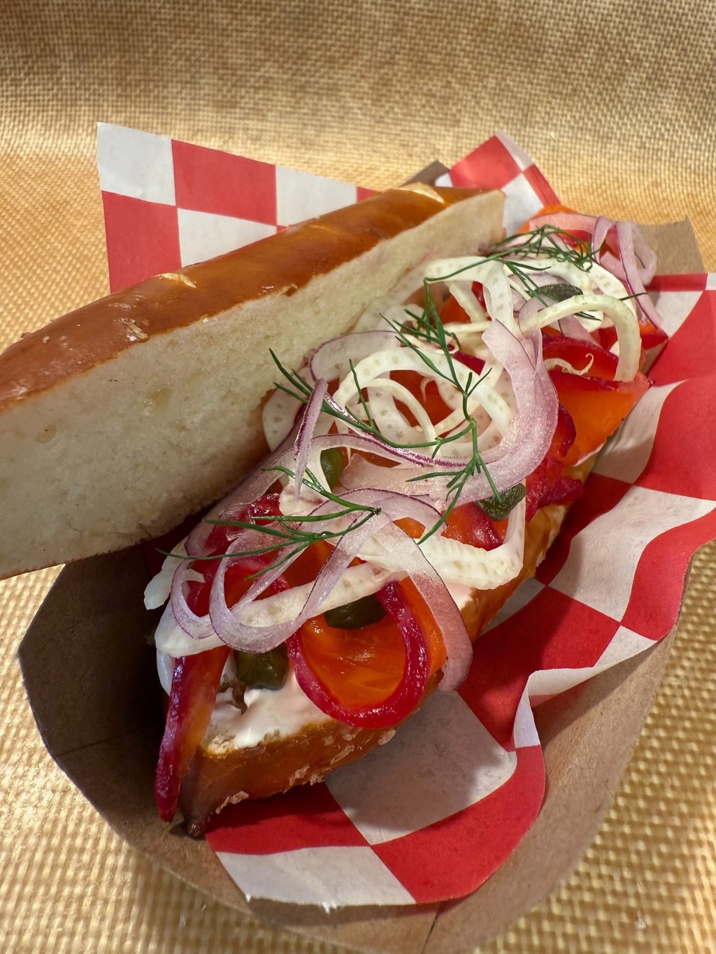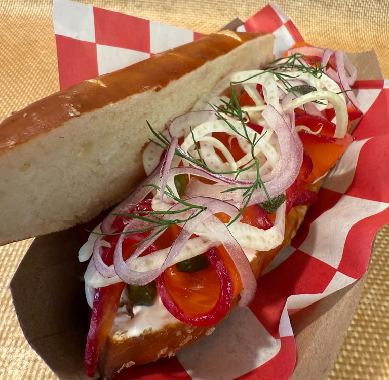 Got into a little collab action again with Squabisch (on Solano Ave.) Beet cured salmon on their delicious and beautifully shaped torpedo pretzels. If you were in Philly some time ago and ate at High Street on Market (currently known as High Street Philly) you would find this sandwich nostalgic! It's a homage to what we had served back then! Looking forward to another collaberation with Squabisch in the near future!