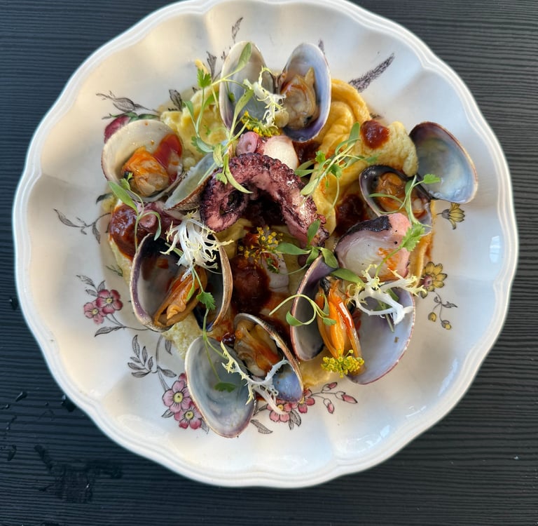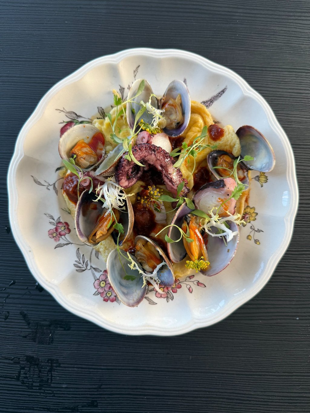 Alta Vina popup was another fun one. One of the dishes feathered on the menu was a seafood omelette. Inspired by flavors from Singapore: octupus, ling cod and manila clams atop a lightly scrambled egg dotted and dressed with our beloved Fins & Feathers vegan sambal tumis. Definitely a hit, and a guest had actually ordered a second!