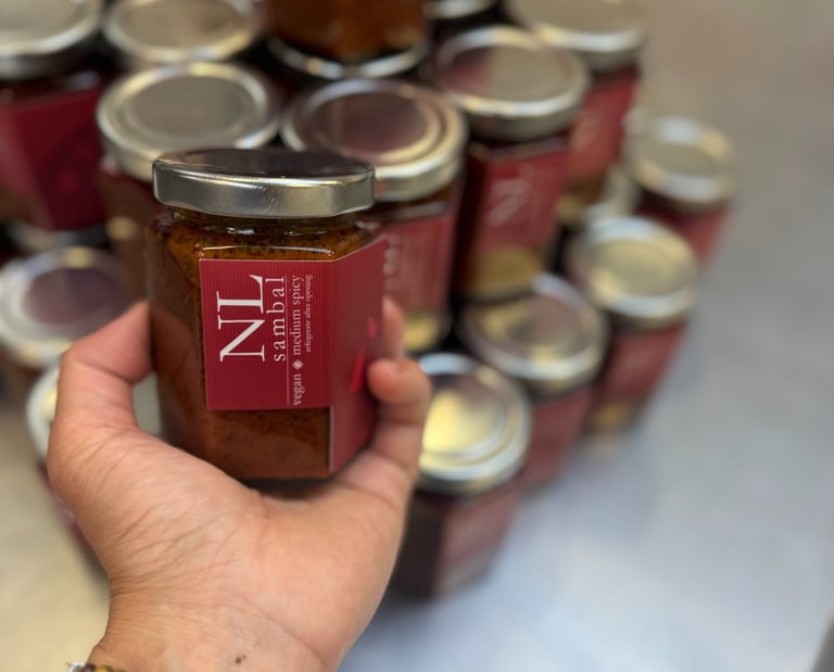 Sambal tumis sauce continues to be an on-going Fins & Feathers project that seem to have gain some attention. It is one unlike any other condiments that anyone can find on the grocery shelves so far! Definitely a treasured family recipe handed down, unadulterated AND vegan. Our hope is to be able to share this condiment with many more across the Bay Area in time to come.
