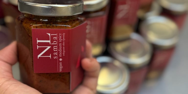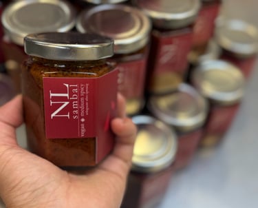 Sambal tumis sauce continues to be an on-going Fins & Feathers project that seem to have gain some attention. It is one unlike any other condiments that anyone can find on the grocery shelves so far! Definitely a treasured family recipe handed down, unadulterated AND vegan. Our hope is to be able to share this condiment with many more across the Bay Area in time to come.