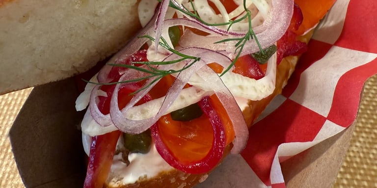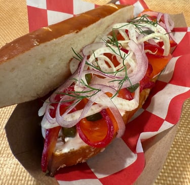 Got into a little collab action again with Squabisch (on Solano Ave.) Beet cured salmon on their delicious and beautifully shaped torpedo pretzels. If you were in Philly some time ago and ate at High Street on Market (currently known as High Street Philly) you would find this sandwich nostalgic! It's a homage to what we had served back then! Looking forward to another collaberation with Squabisch in the near future!