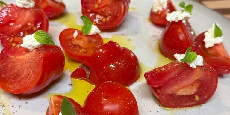 Shopping the farmers Markets! Yes, many have had those sweet and juicy Jersey tomatoes while living on the East Coast, but these early girl tomatoes are perfectly ripe, sweet and juicy too! Ricotta, a good olive oil, micro basil and freshly ground pepper and some flake salt. Simple and DELISH! My Asian twist if I am on a wimp, add fermented soy instead of the ricotta. Voila, it is turned into a vegan summer salad accompanied by abundance of umami notes!