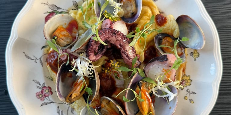 Alta Vina popup was another fun one. One of the dishes feathered on the menu was a seafood omelette. Inspired by flavors from Singapore: octupus, ling cod and manila clams atop a lightly scrambled egg dotted and dressed with our beloved Fins & Feathers vegan sambal tumis. Definitely a hit, and a guest had actually ordered a second!